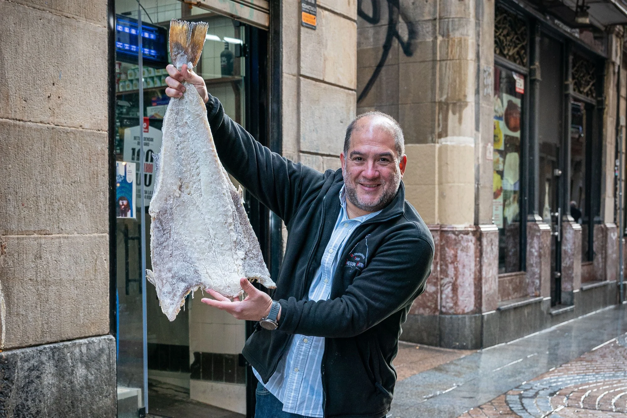 Estas pasadas Navidades Luis Arbiol Oñate (51) ha revivido tras el mostrador de Gregorio Martín una de esas escenas que conforman la historia pequeña del país. La compra de bacaladas enteras, envueltas como es costumbre en papel de estraza, para ser entregadas como regalo singular a parientes y forasteros. «Es una tradición llevar bacalao para regalar», me descubre Arbiol.