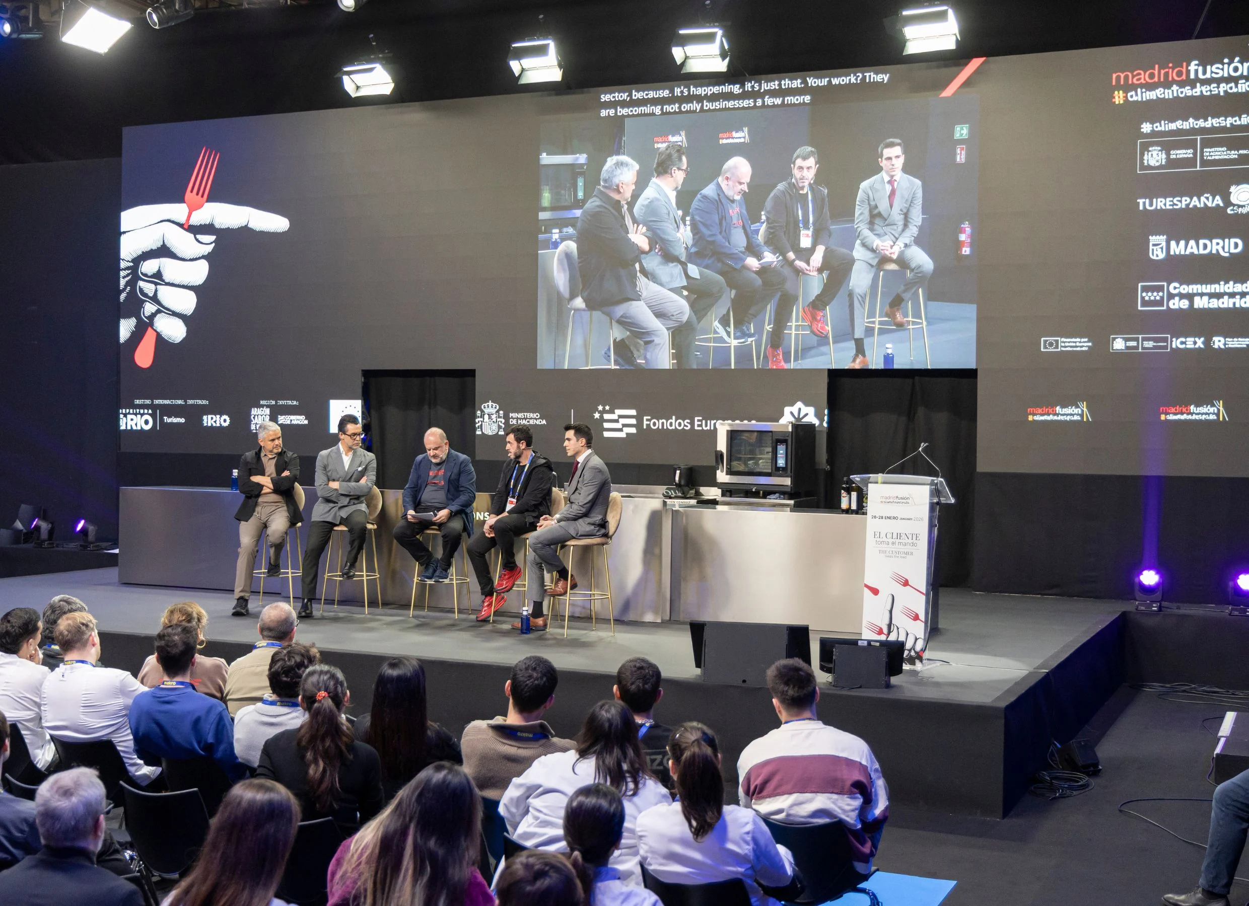 La edición de Madrid Fusión Alimentos de España que decidió centrarse en el cliente quiso abordar temas que también repercuten en el servicio, en los horarios en que se pueden disfrutar los restaurantes y en el precio final que se paga por el servicio. Quique Dacosta, consumado veterano en el congreso (también este año presentó sus novedades culinarias sobre el escenario principal) dijo al respecto que “Madrid Fusión también es una plataforma donde hacernos oír, porque somos un activo para el país y estas y otras circunstancias nos están impidiendo poder seguir emprendiendo en este oficio, que es pasional, pero que tiene que ser sostenible en lo económico.” “Mi deseo”, finalizó, “es que dentro de diez años, el proyecto pequeñito que nazca hoy haya prosperado, y que no volvamos a cerrar otro sueño y a empobrecer nuestra economía más próxima. Dejamos el mensaje a quien corresponda”.