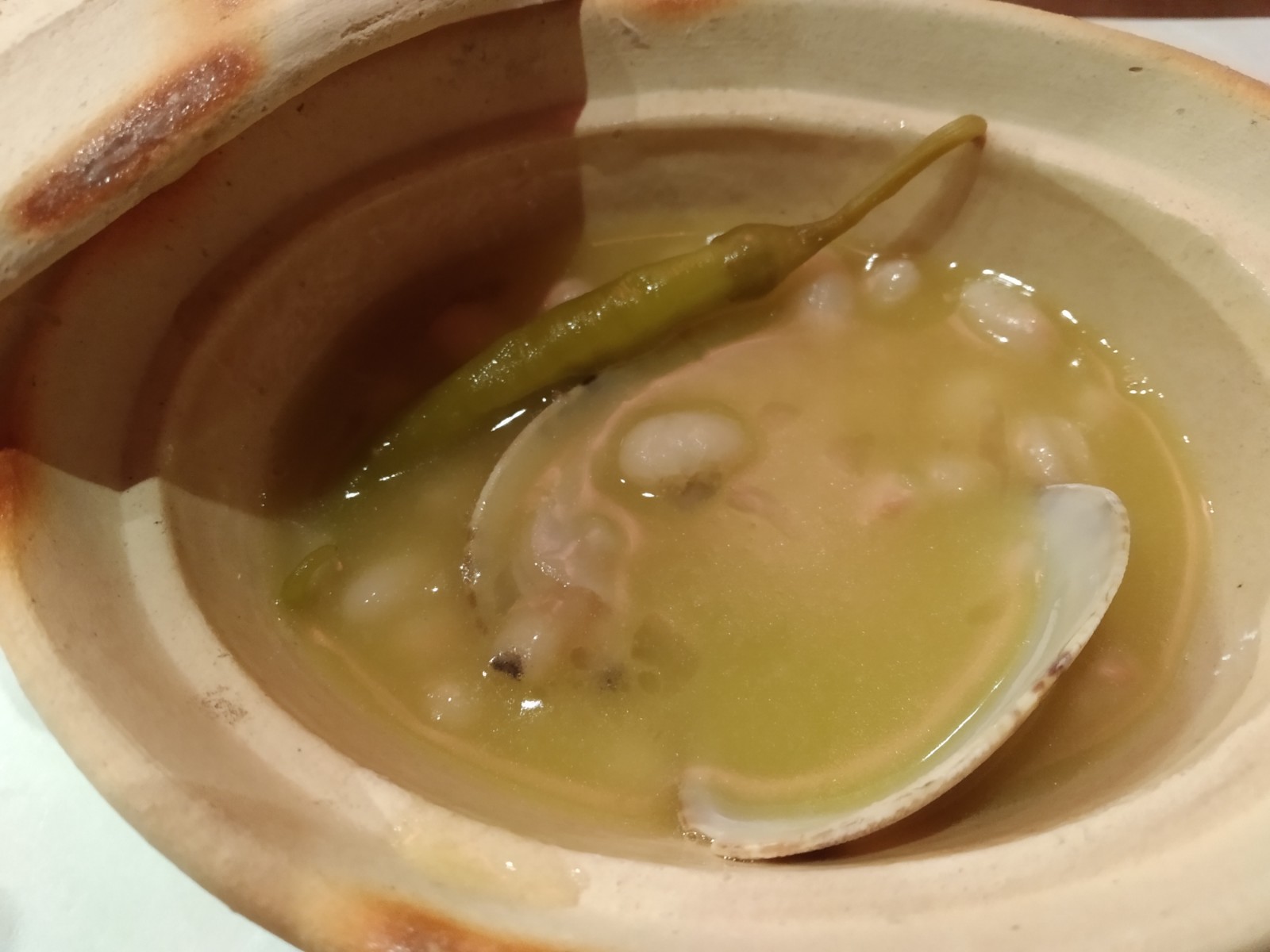 1. Lo que a priori no casaba: AOVE y sake. ‘Matrimonio prohibido’ en Japón. Hubo reconciliación. Y fuegos artificiales. Maravillosas las Judías de Santa Pau con almejas a la brasa armonizadas con Keigetsu CEL24 Junmai Daiginjo 50; un sake para servir frío, fácil de tomar si eres principiante.