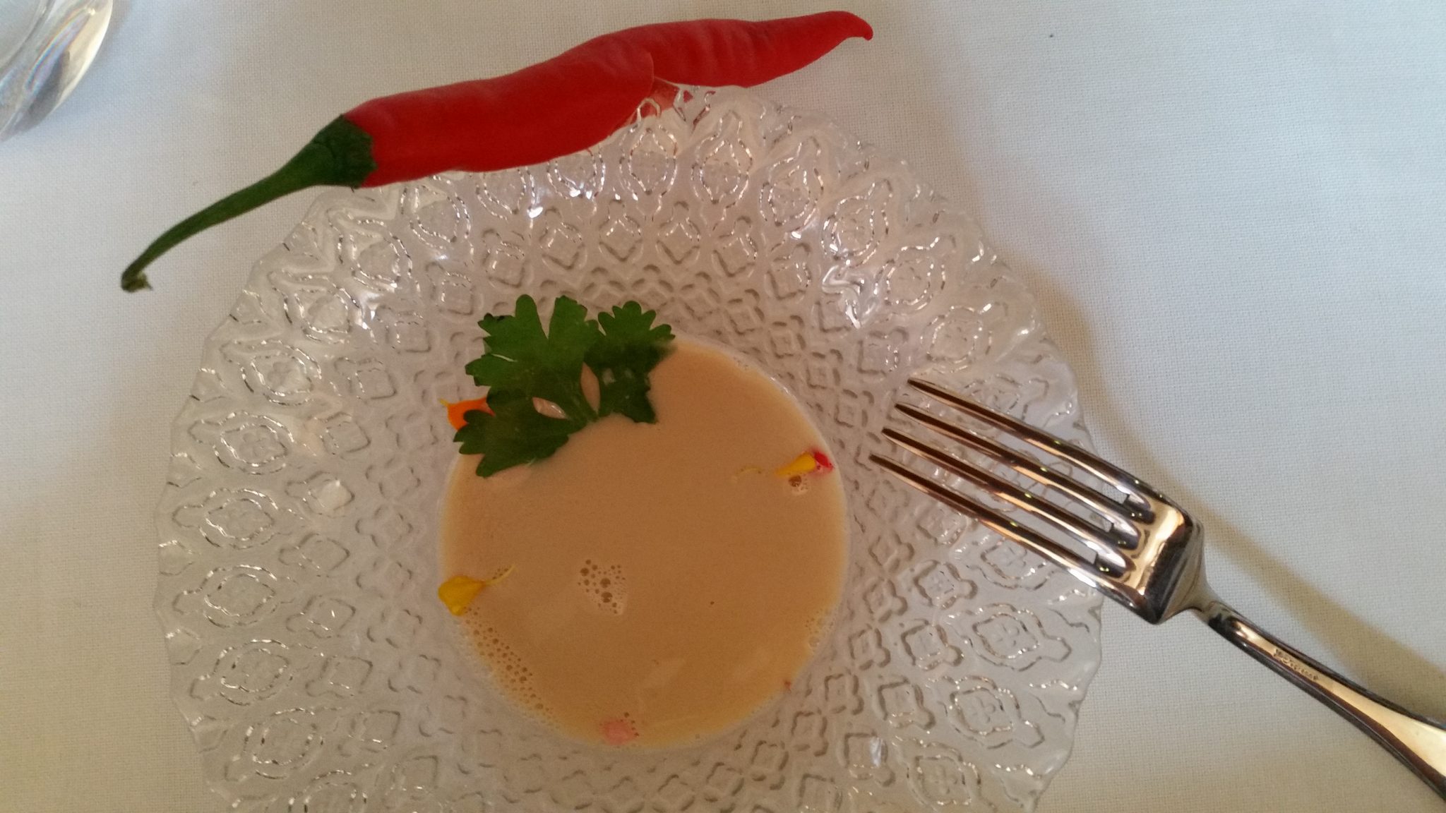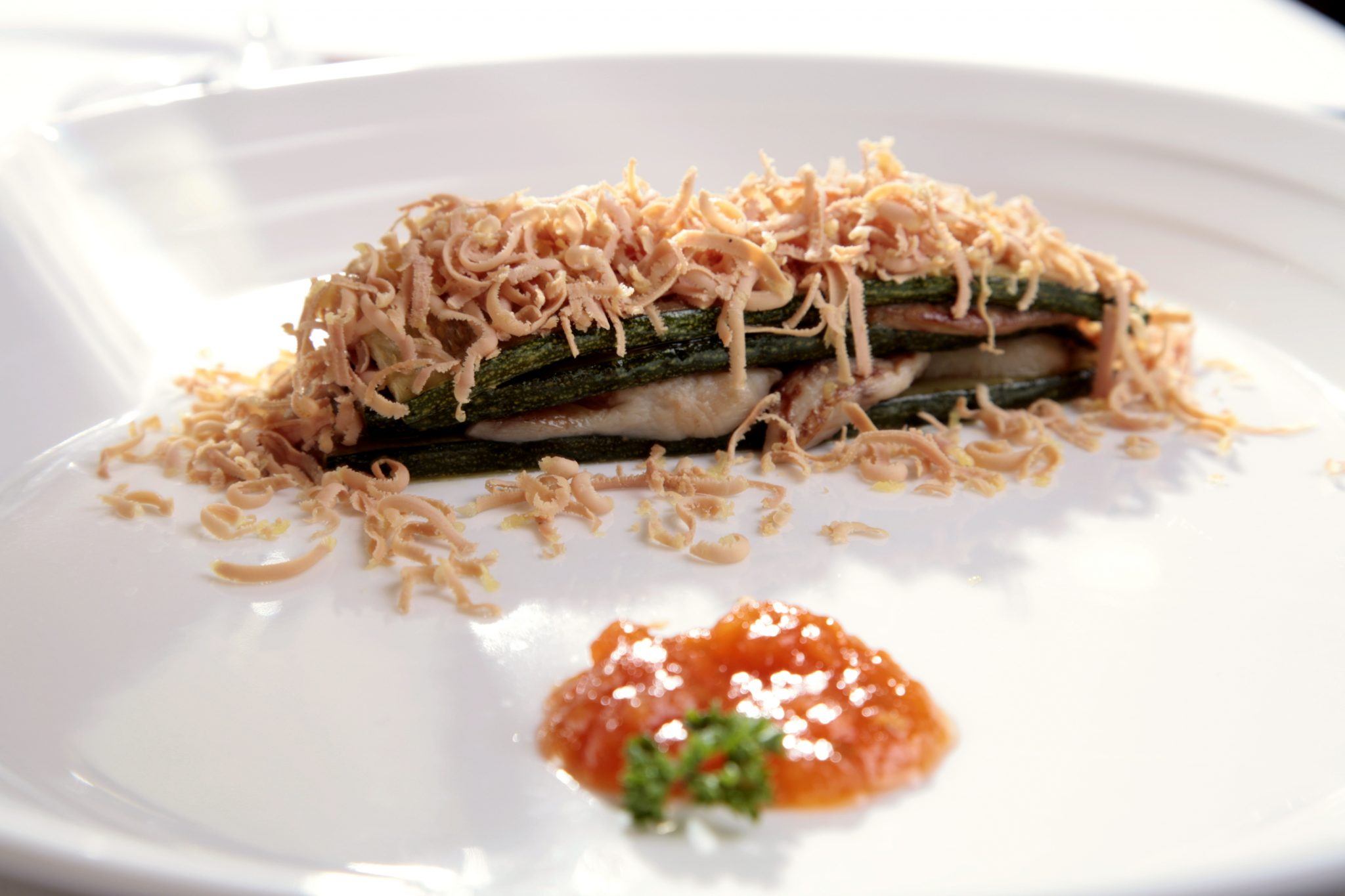 Miguel Tamura, el jovial director del establecimiento, invita a comer en la Casa Club del hotel. Un menú sencillo pero elaborado con mimo. Javier Pérez es el chef, con el que platico de nuestro amigo común, Roberto Ruiz, del Punto MX. Contando con su colaboración ha diseñado una panorámica mexicana para el buffet del hotel… Pero este mediodía vamos de territorio. La ensaladilla, toque levísimo de pimientos (aquí es obligado) y ventresca de atún, viene acompañada de regañás. Es una ensaladilla canalla, como procede, y la acomodo en mi panteón particular. Foie gras. Brandada de bacalao con piñones. Chipirones con salmorejo y fritura de calabacines de El Ejido. Rodaballo con verduras. Ahora sí ya estamos aquí.