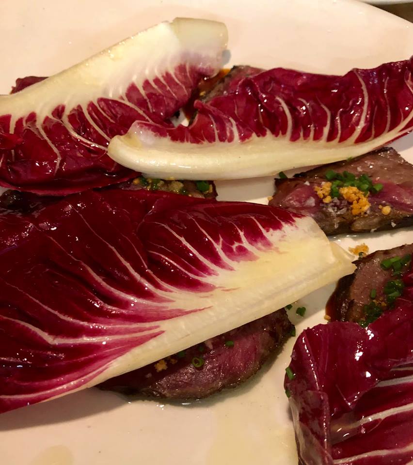 Lomo bajo de vaca, miso/mostaza, lechuga