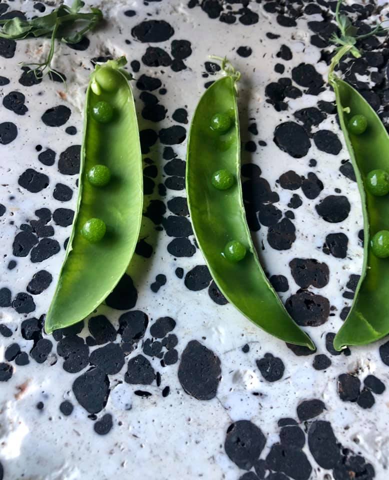 De nuestra huerta: canapé de zanahoria, los primeros guisantes, ramillete de escarola y hoja de col