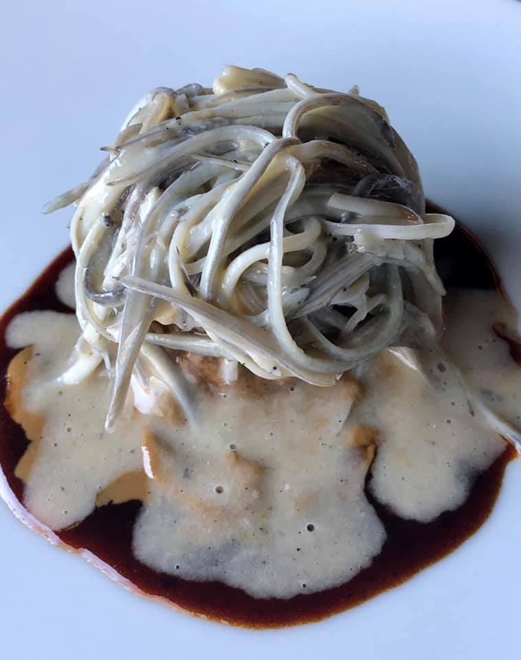 La tierra, el agua, el cereal: espagueti de alforfón con caldo trufado,