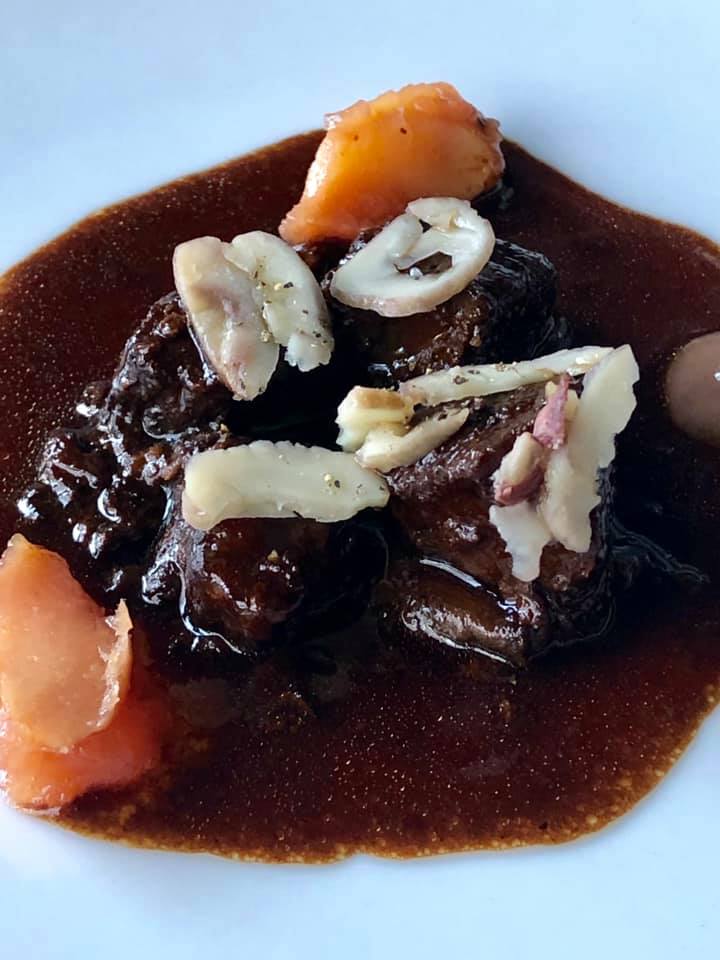 Hablemos de cocina: la apuesta culinaria de Les Cols está ligada al paisaje, a la Garrotxa. Austero, intenso, lleno de esplendor de naturaleza, y también por la estación, invernal. La caza me sorprendió por su autenticidad. No la había probado antes porque siempre he comido en esta casa en verano.