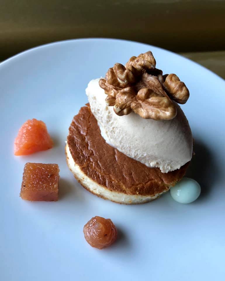Contraste de sabores: membrillo, queso azul de Centelles, nuez tierna