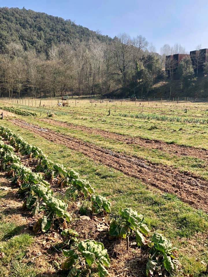 Antes de sentarnos en el restaurante, visitamos los huertos de Les Cols, que Guillem lleva con la sabiduría que tienen los hombres de campo.