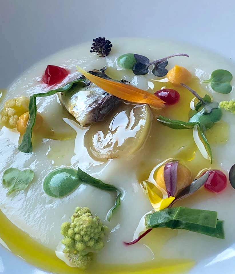 De textura sedosa: crema de coliflor, arenque, uva