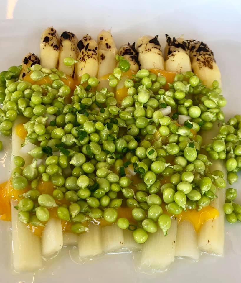 Espárragos blancos de «Sartaguda» y guisantes lágrima de Getaria