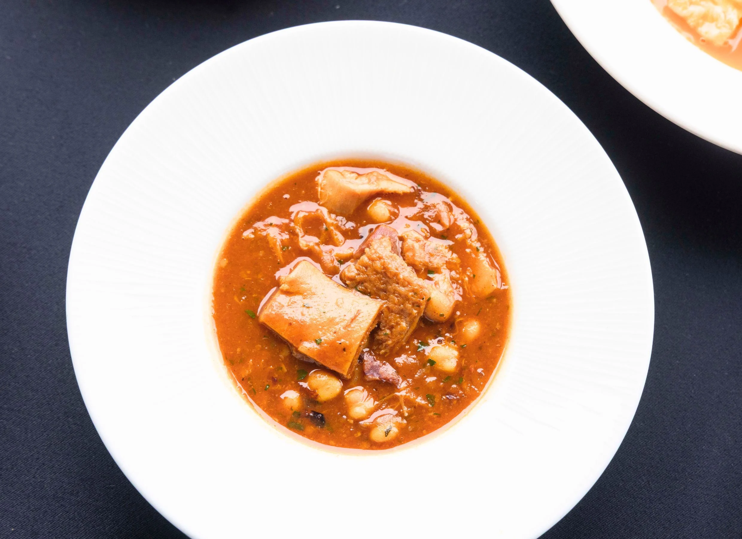 En el corazón de la tradición vasca en el II Foro de Tabernas, este guiso de callos y capipota reivindica la cocina de fuego lento, el sabor profundo del pimentón y el perfume inconfundible de los embutidos ibéricos. Un plato de campeonato llegado a San Sebastián Gastronomika desde L’Hospitalet Artesana Santa Eulàlia, de los que se comen con cuchara y pan abundante.
