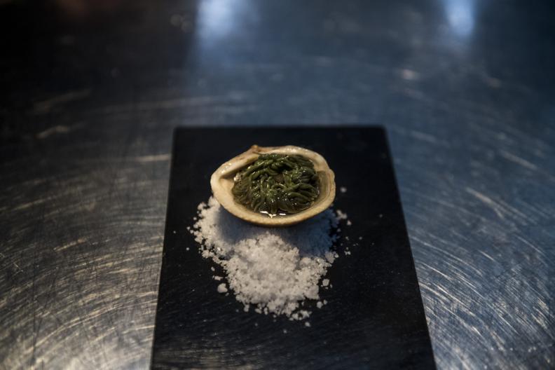Había sido una sucesión de maestría y singularidad en el despiece de los pescados, de sostenibilidad y valor al poner sobre el fuego partes menos frecuentes cocinadas como las cabezas de las jurelas (servidas sin cubiertos “para que la experiencia culinaria empiece en los dedos al sentir el tacto del pescado y acabe también en ellos al chupárselos de gusto” –Elejabeitia-) o sus huevas y gónadas (“Una delicada y sicalíptica introspección a los orígenes y la pasión marina” –Agulló-). Una nueva dimensión, de brasa y producto. “Es entrar en una materia nueva en la que no se ha profundizado y tiene mucho interés”, seguía la madrileña.