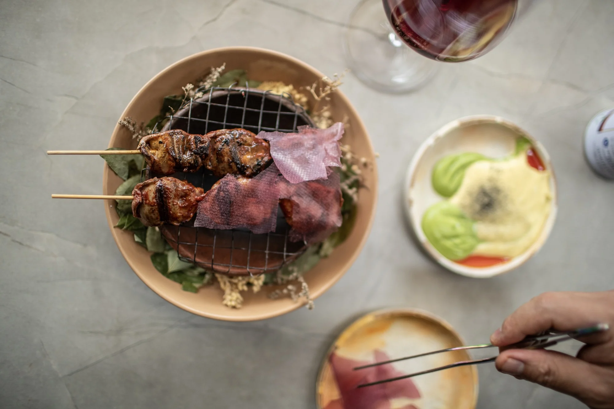 Quince platos y cuatro postres bastan para resumir el universo de Contraste. Las conchas con leche de tigre de miso, aceite de achiote y quinua pop celebran la frescura sin esconder nada. Los taquitos nikkei con panceta rostizada, encurtidos y mayonesa de ají panca recuerdan a la cocina de barrio con un giro contemporáneo. Los anticuchos (brochetas sazonadas) con crocante de papa y salsa de ocopa nos hablan de la cocina peruana desde otro lugar, cambiando el corazón de vaca de los tradicionales anticuchos por el pato. Los baos de cola de buey en su jugo con crema de choclo trufado, traen de vuelta un guiño francés, en clave nikkei, al igual que el falso niguiri de roast beef con pomme dauphine y huevo de codorniz.