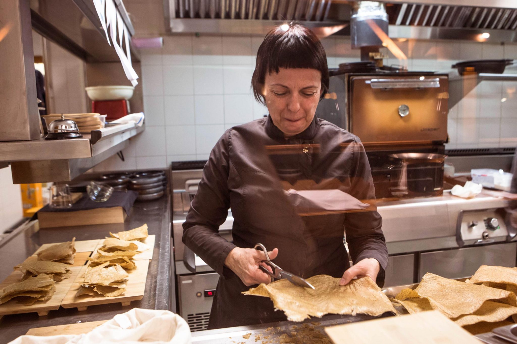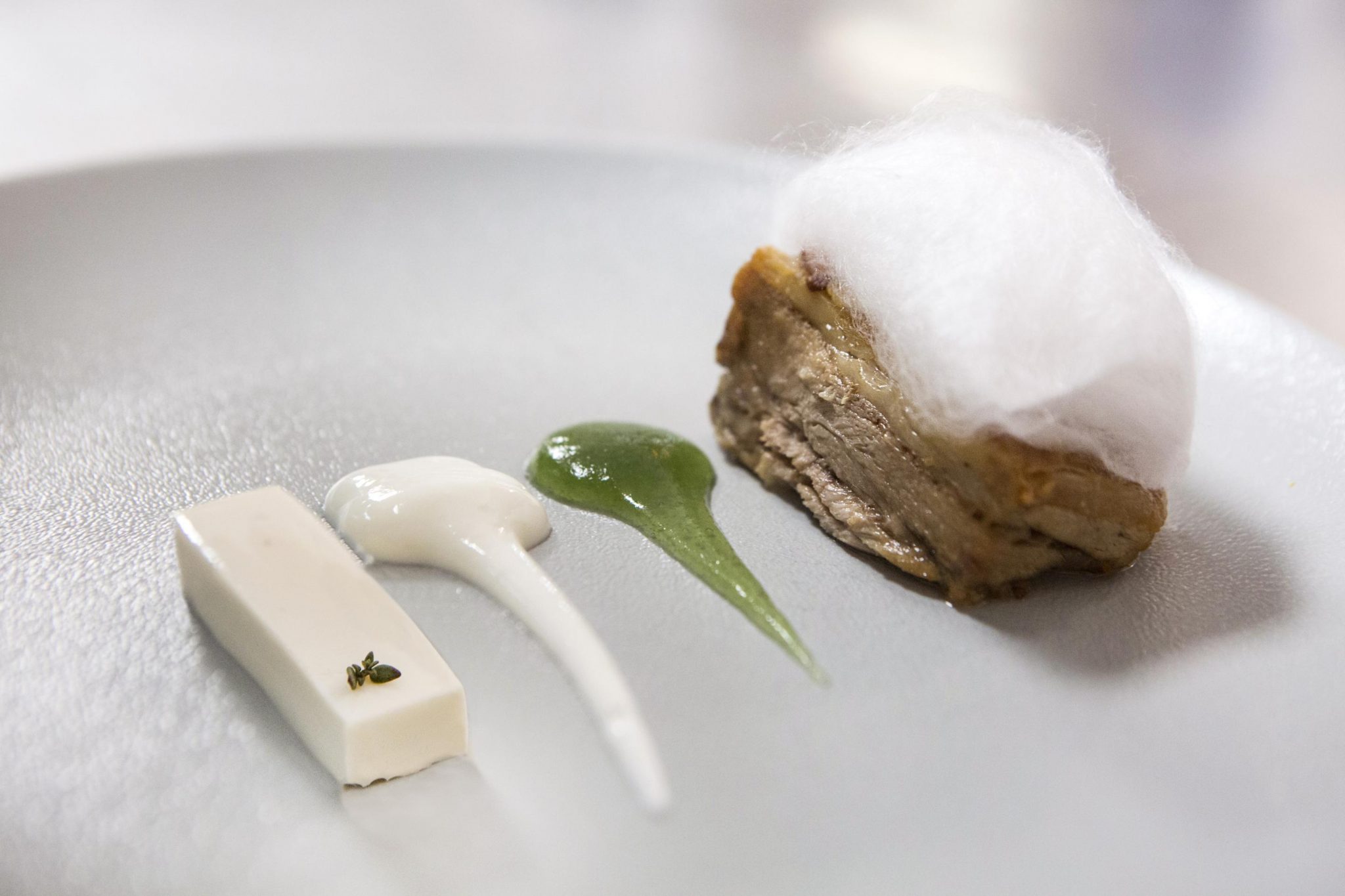 Las propuestas de Puigdevall han ido en consonancia con su cocina y su visión particular de los productos propios de su territorio, la Garrotxa. Ante 50 comensales, y en el restaurante L’Arrosseria a más de 2.000 metros de altitud, madre e hija han elaborado un completo menú a base de, entre otros, caldo volcánico; judías de Santa Pau, bicho confitado y tocino vegetal; huevo fresco del día evocando un canelón, pasta fresca, carne de asado y nuez moscada, o paletilla de cordero, leche de oveja, tomillo y lana. El maridaje, Veuve Clicquot Yellow Label bruto, Veuve Clicquot Vintage 2012 blanco, Veuve Clicquot Extra bruto extra old, Veuve Clicquot la Grande Dame 2008 blanco y Veuve Clicquot Rich blanco.