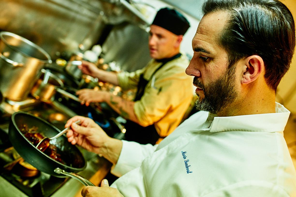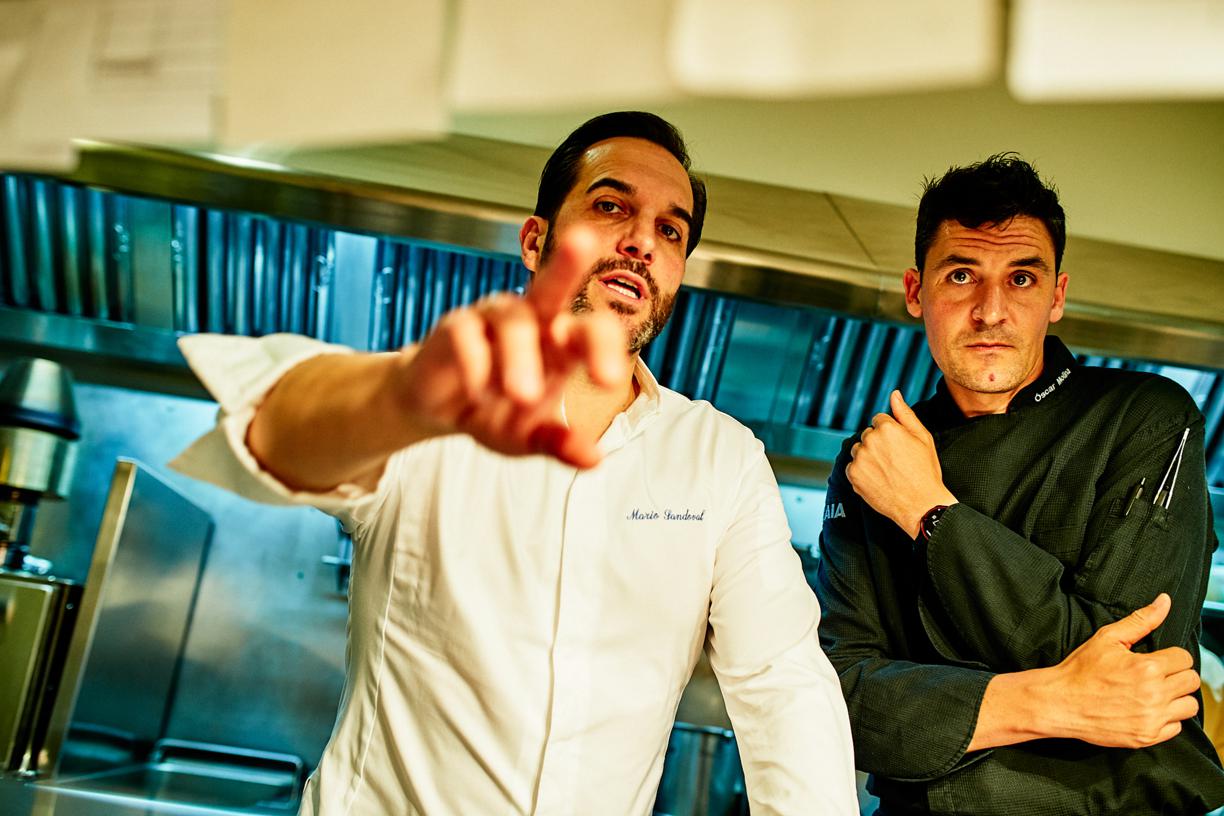 El biestrellado chef madrileño Mario Sandoval acudió el sábado a la llamada de su colega Óscar Molina, La Gaia (Ibiza), para celebrar la puesta de largo en 2019 del restaurante de Ibiza Gran Hotel. Amigos desde 2005 -coincidieron en el Concurso Nacional de Gastronomía-, Sandoval y Molina representan ahora dos estilos de cocina divergentes, que se encontraron tras horas de visitas mutuas en pro de una línea común. A la casticidad de territorio y última técnica del madrileño se le sumó la querencia viajera y nikkei pero con los pies en la isla del barcelonés, que rebajó intensidad en su propuesta habitual para encontrarse y presentar una cena única de 4 snacks y 8 platos que certificaba convergencias.