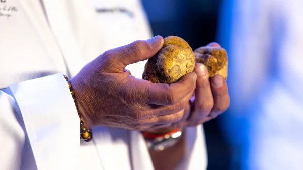 Opinión El hongo blanco Israel, el maitre, la muestra con orgullo. Una gran caja de madera abierta que contiene una docena de piezas terrosas y blancas…